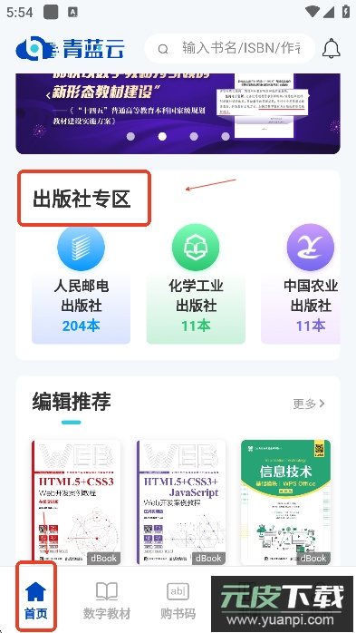 在应用首页点击“出版社专区”入口,可以浏览更多专业领域的教材资源。