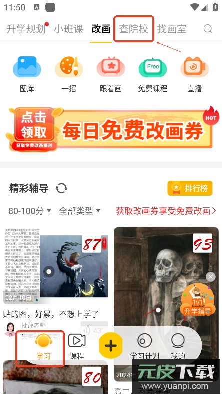 立即下载美院帮app是专为美术艺考生打造的学习交流平台,致力于提供全面的艺考学习支持,帮助考生提升专业水平并规划升学路径。用户可以通过学习平台内的美术名师课程来强化自身技能,同时查询全国各地院校的详细信息,了解各校招生要求,从而更好地定位报考目标。