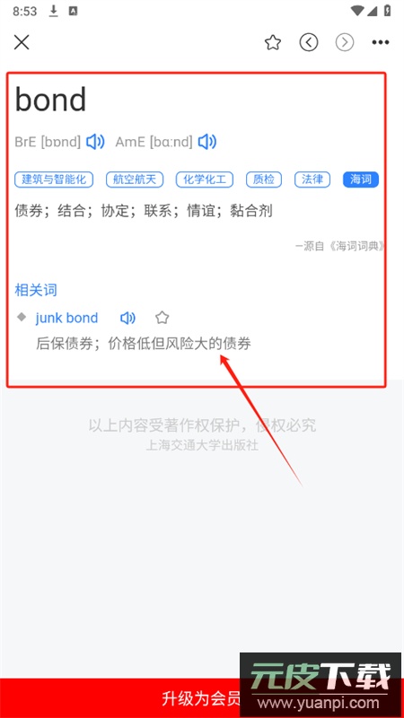 5、点击查询结果即可查看该词条的详细释义与相关解释。