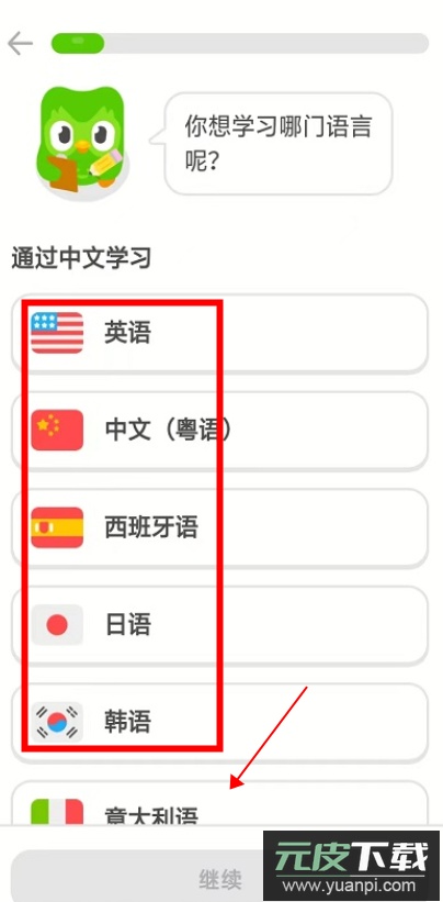 1、从本站下载安装后打开应用,新用户需要先选择一种希望学习的语言;