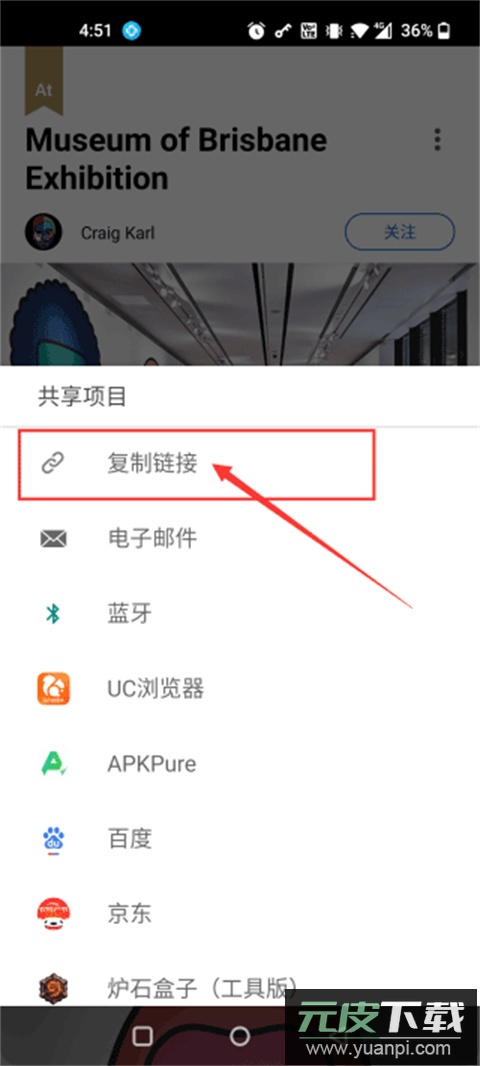 4、接着选择复制链接功能;