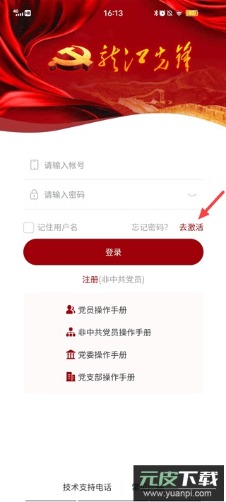 1、启动应用后,在注册登录界面点击“去激活”按钮。