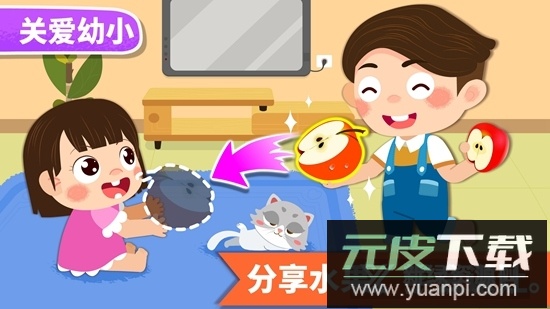 1. 设置有照顾小妹妹的互动场景,引导孩子学会承担照看家人的小责任;