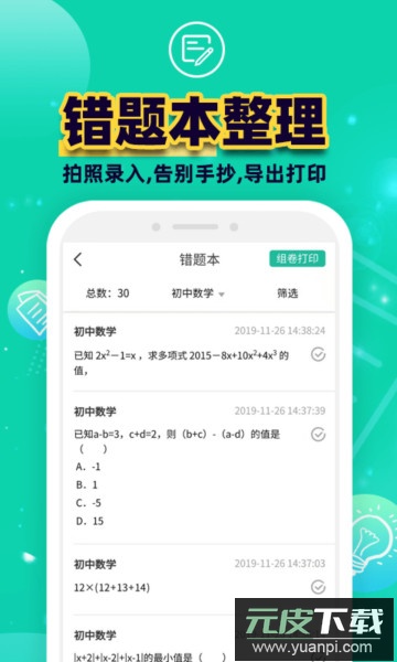 4、错题整理:建立错题档案并分类归纳,标注对应知识点,一键导出打印以便反复练习;