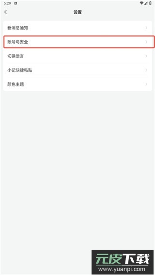 2. 进入设置界面后,找到并点击账号与安全。