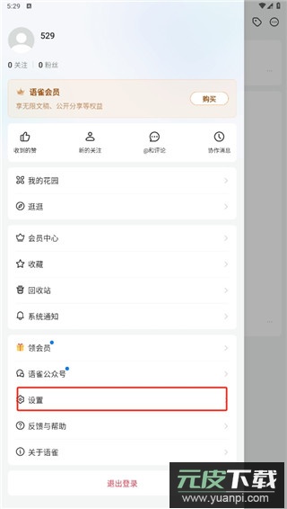 1. 启动应用后,点击左上角头像,在菜单栏中选择设置选项。
