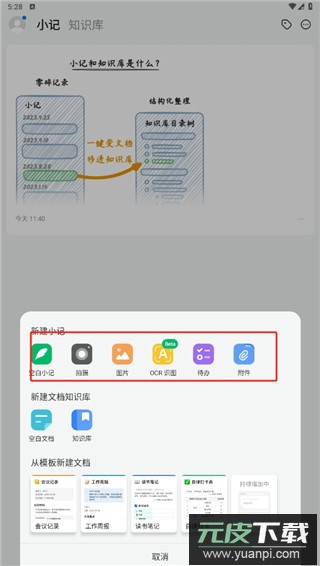 1. 打开已安装的应用,点击首页加号图标,选择创建小记或文档。