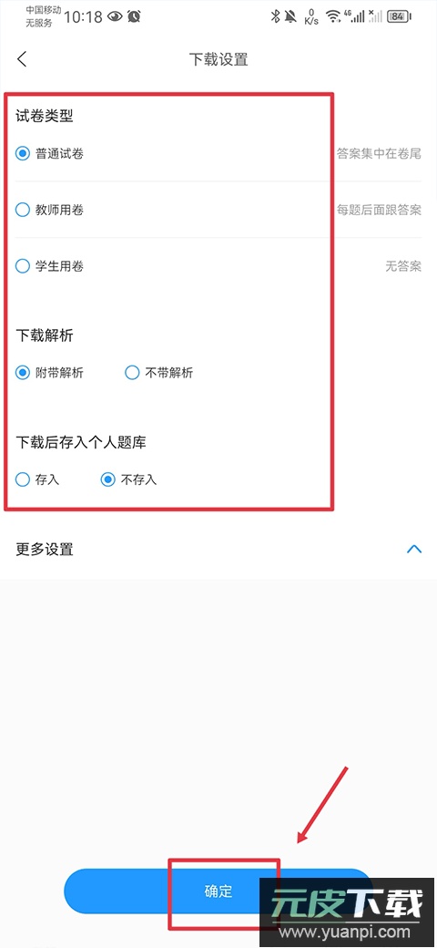 4、按需选择试卷类型、是否包含答案与解析等,确认后即可完成下载。