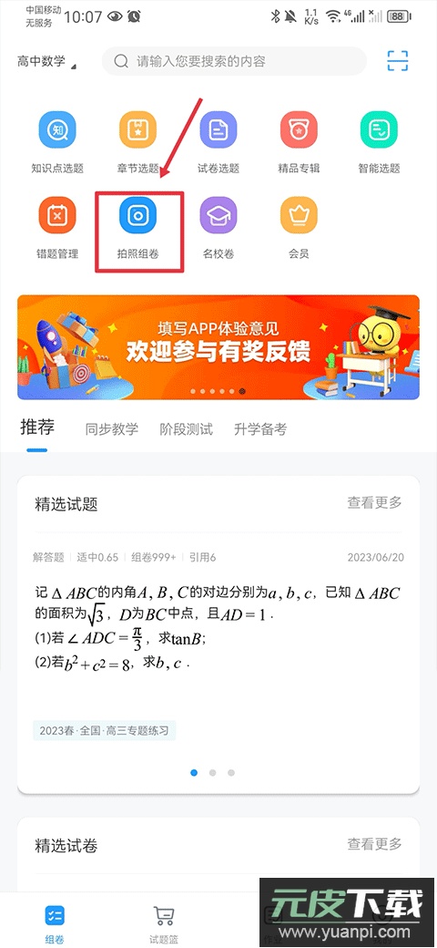 1、启动应用,点击拍照组卷功能入口。