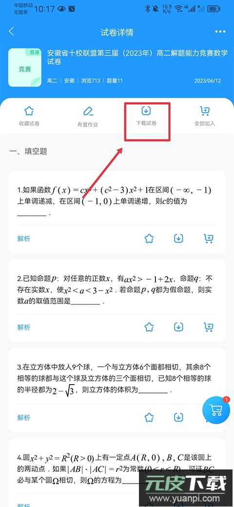 3、在试卷页面中找到“下载试卷”按钮。