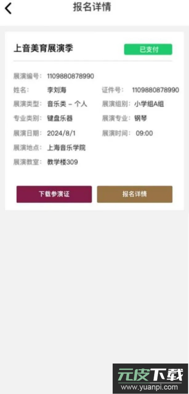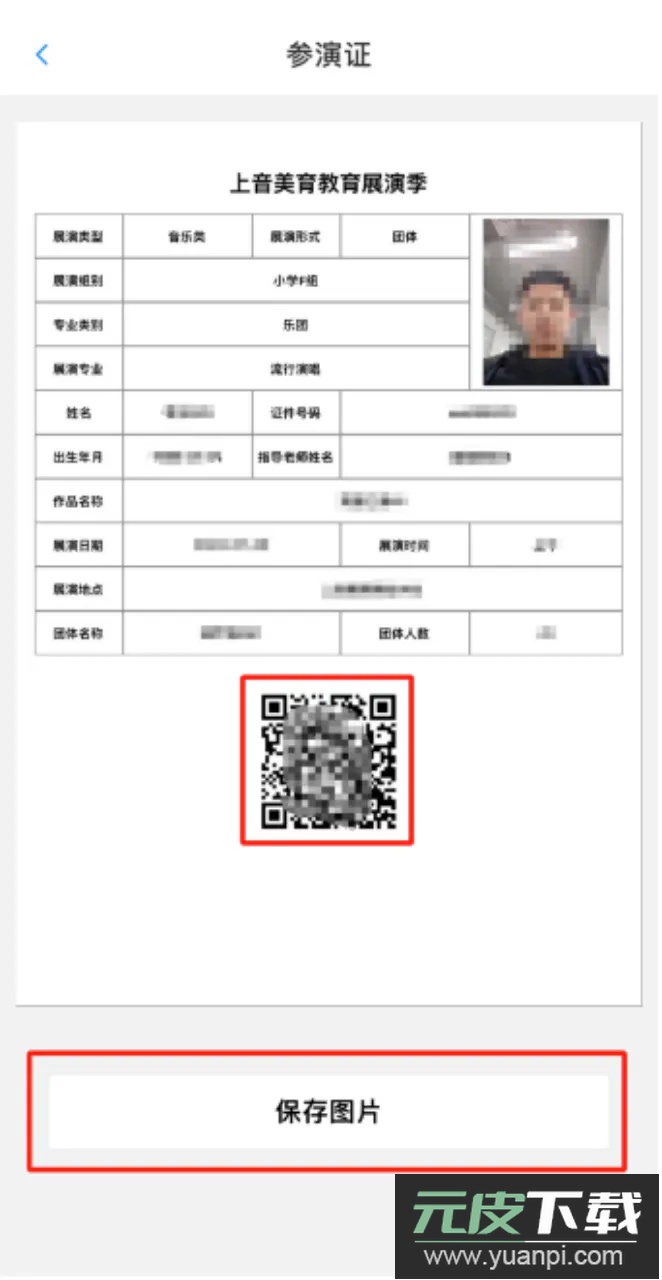 5、在报名详情页中,可直接下载参演证图片,用于打印。