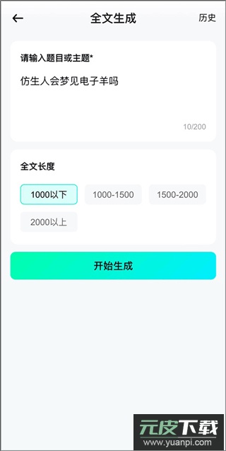 2、填写文章标题与核心主题,设定所需篇幅长度,随后点击生成按钮启动创作。