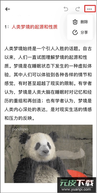 5、内容完成后,可进行删除或分享操作;点击页面右上角的功能图标即可执行。