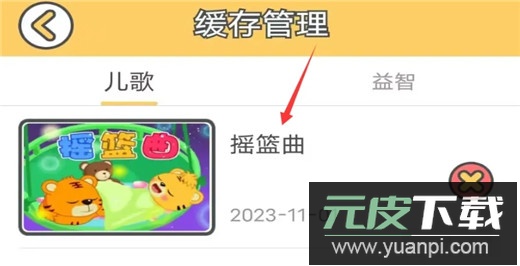 最后进入缓存管理界面,即可查看并管理已下载的儿歌文件。