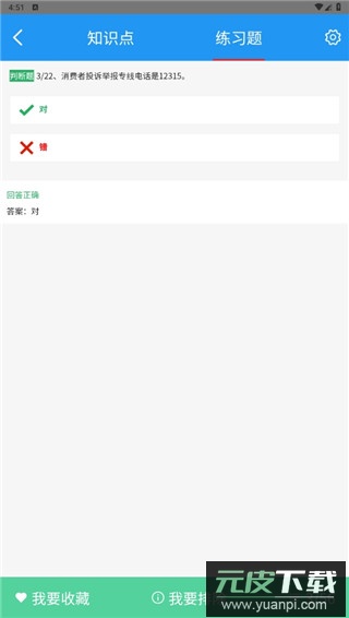 3、每道题作答后会显示正确答案,向右滑动可进入下一题。
