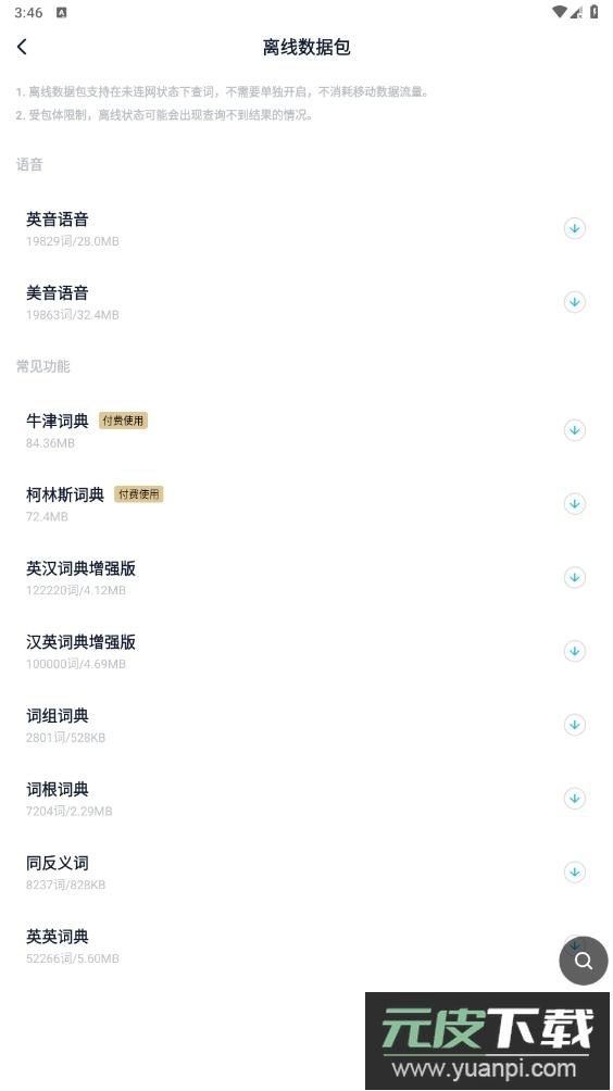 4、支持离线下载词典内容,无网络时仍可正常使用;