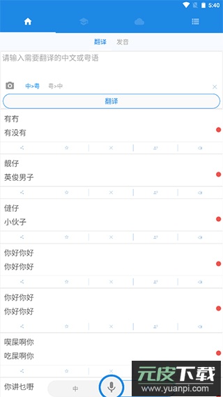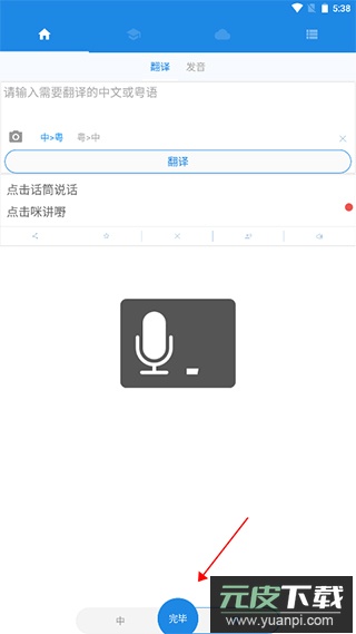 1、启动应用后,点击麦克风图标说出需要翻译的句子