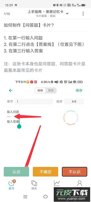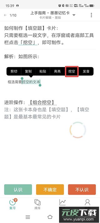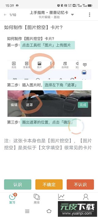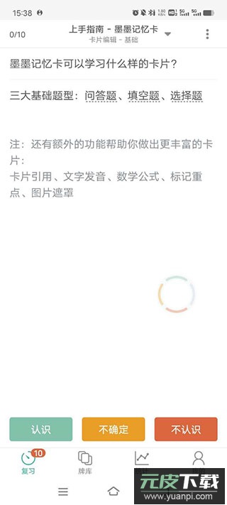 2. 基础学习模式为问答题,你可根据记忆情况选择“认识”、“不确定”或“不认识”,系统将据此评估你的掌握程度;