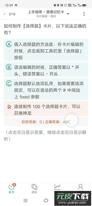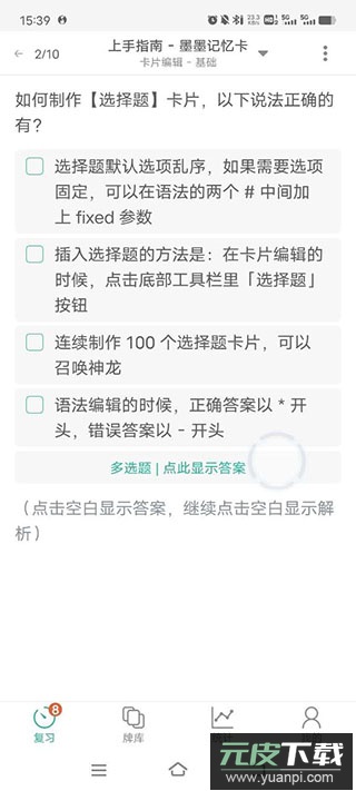 6. 软件也支持多选题模式,作答后点击空白区域可以查看题目解析;