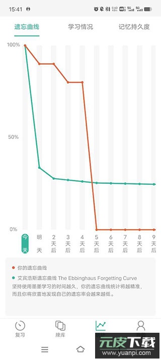 9. 学习一段时间后,可以在数据统计中查看个人遗忘曲线与记忆持久度报告,更好地掌握自身学习状况;