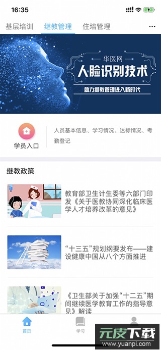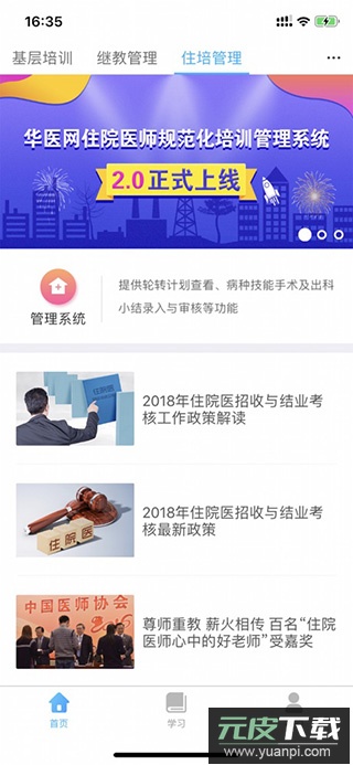 2、点击住培管理模块,查看医院最新政策与工作指导文件;