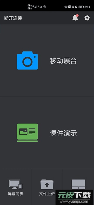 2、成功连接后,即可在手机界面进行功能选择;如需同步展示实时画面,可使用移动展台功能;
