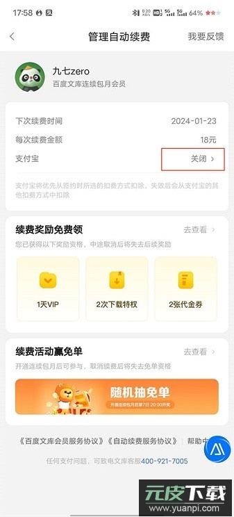 3、点击关闭服务,并确认放弃续费即可。