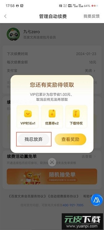 提示:取消自动续费后,已购买的会员权益可继续使用至有效期结束;如需重新开通,可在会员页面再次进行操作。