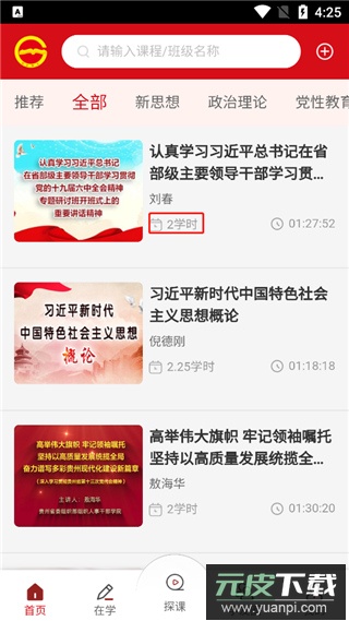 2、点击“全部”分类,浏览并选择需要学习的课程,每门课程均标注对应学时;