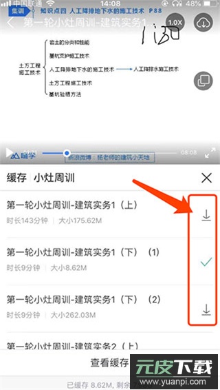 4、视频下载完成后会出现对勾标识,你还可以继续缓存其他需要的课程视频。