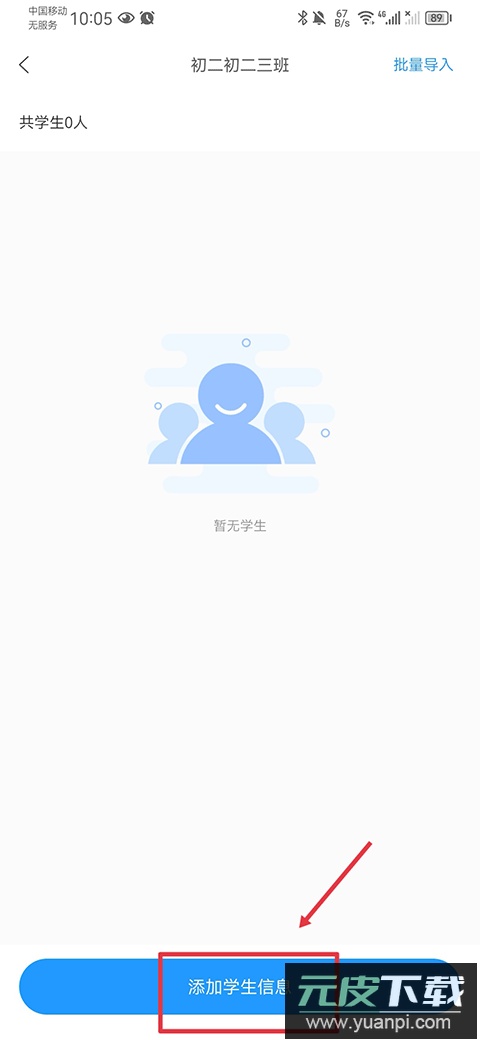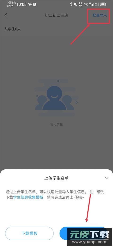 4、如需批量添加,可选择“批量导入”功能,上传包含学生信息的表格文件。