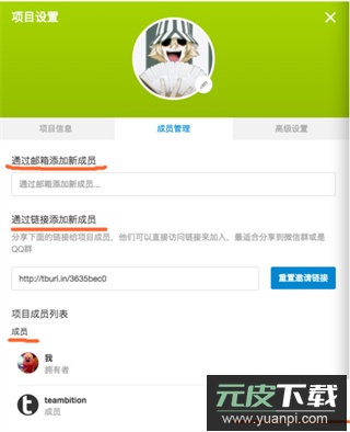 项目创建完成后,可通过邮箱添加成员,并设置管理员权限或移出无关人员。