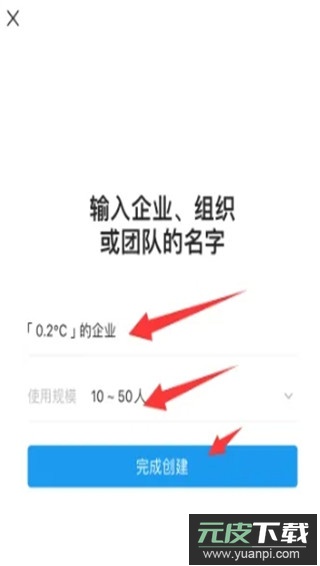 填写企业名称与规模信息,点击完成创建;