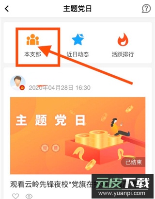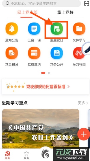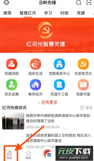 1、打开应用后,点击下方导航栏中的党务板块进入。