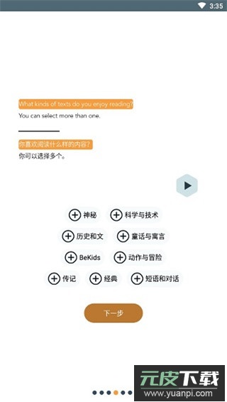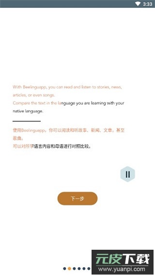 点击下一步,即可开始通过阅读或收听故事、新闻、文章及歌曲来学习,并对照母语理解内容;