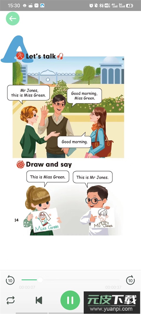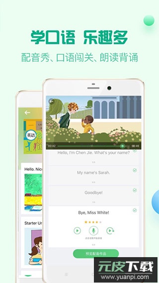 1、教材配音结合闯关模式让学习充满趣味:软件包含大量校园生活情景对话,配合闯关游戏与智能语音测评;通过动画配音秀激发学生开口表达,让英语学习过程生动不枯燥。