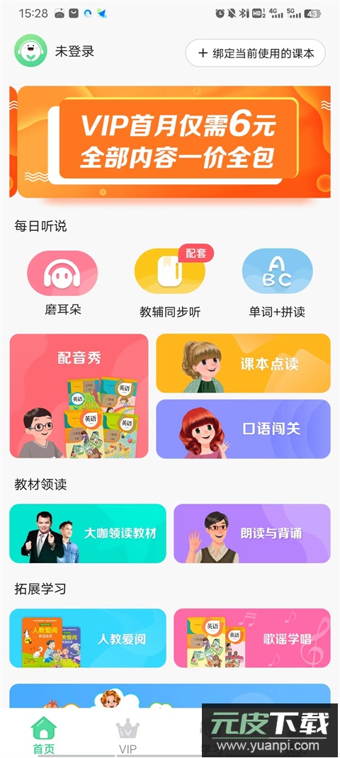 1、打开软件主页面,点击右上角绑定当前使用的课本;