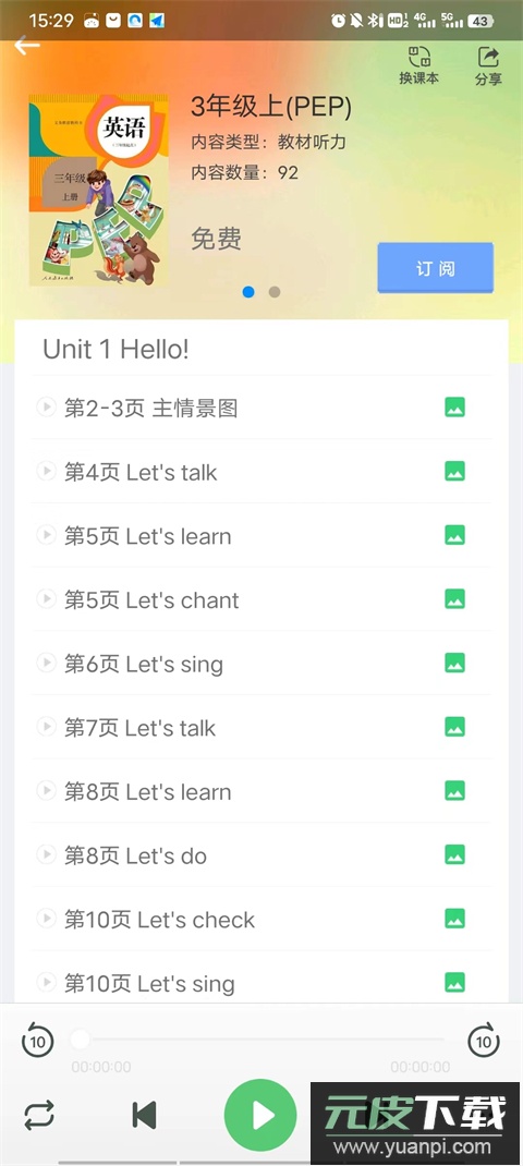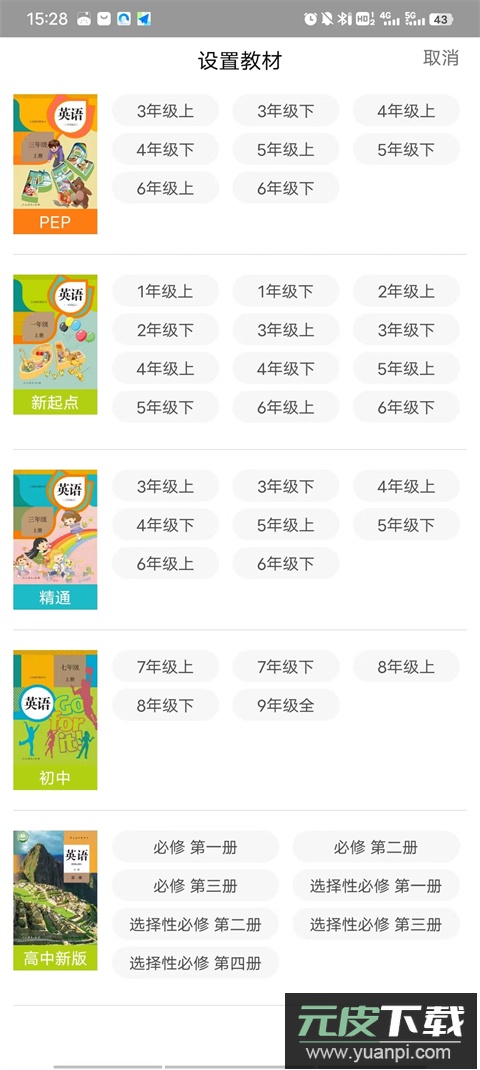 3、选择完成后即可开始学习;如需更换其他课本,再次点击右上角课本图标进行切换。