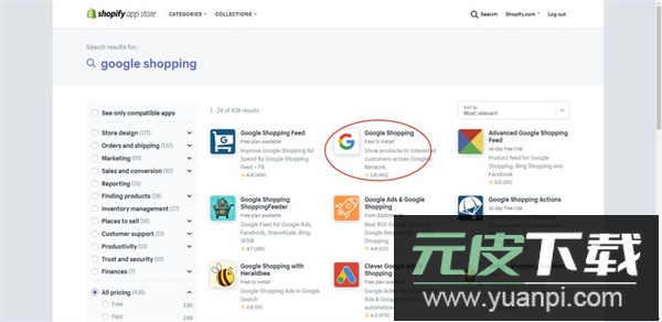 1、在Shopify应用商店搜索并安装Google Shopping插件;