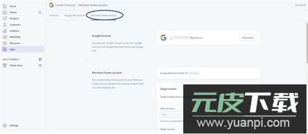2、登录Google Merchant Center账户,将其与Shopify关联,系统将自动导入已设置为Google Shopping渠道的商品;
