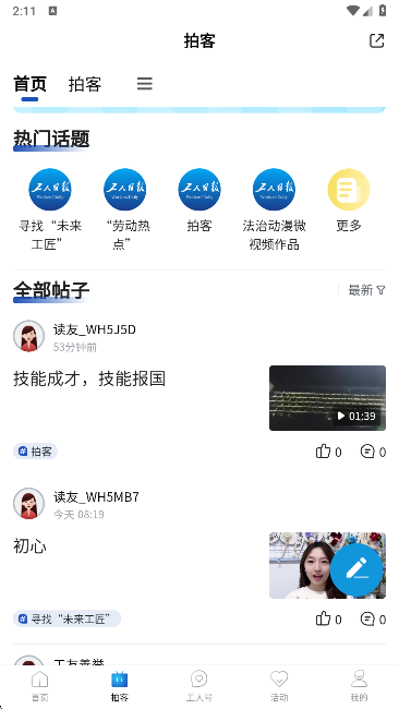 3、进入拍客版块,可自主分享生活中的有趣内容;