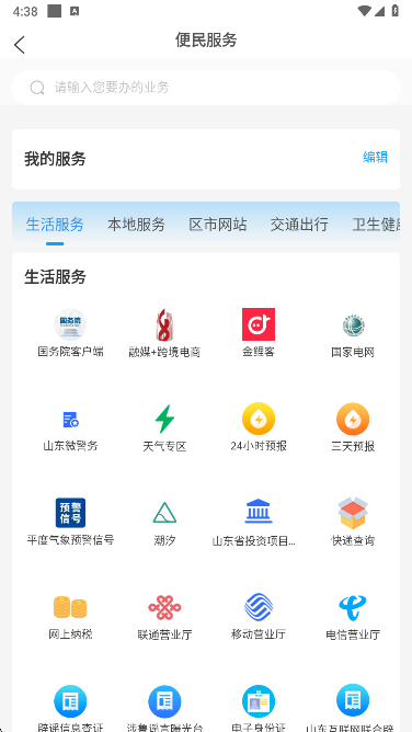 3. 便民服务入口位于显眼位置,方便快速办理各类事务;