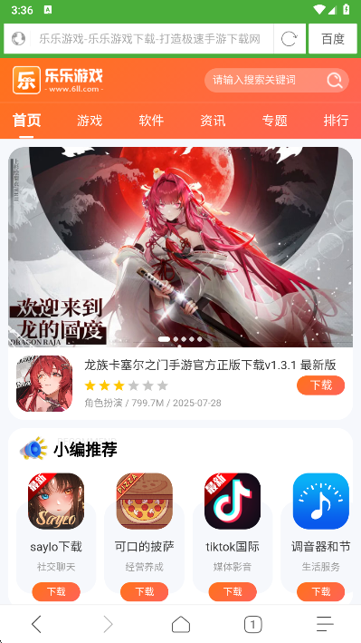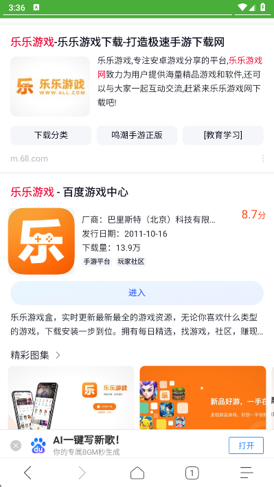 3、例如搜索乐乐游戏,搜索结果页面会直接展示相关网页。