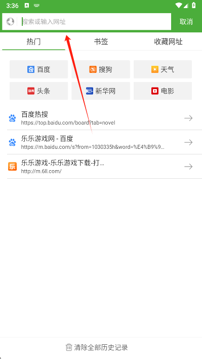 2、您可以在顶部的地址栏中输入网址或关键词进行搜索。