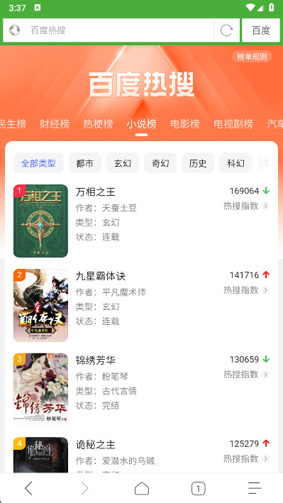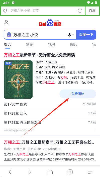 3、选择感兴趣的小说点击进入,即可开始免费阅读。