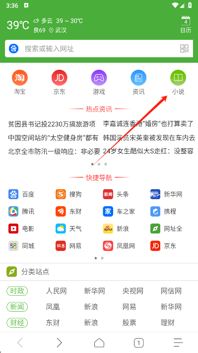 1、从本站下载并安装极速浏览器应用,打开后进入首页,即可看到相关的资讯动态。