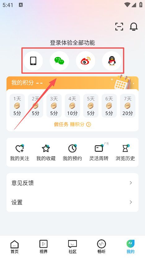 3. 在个人中心页面,选择一种登录方式,例如手机号验证。