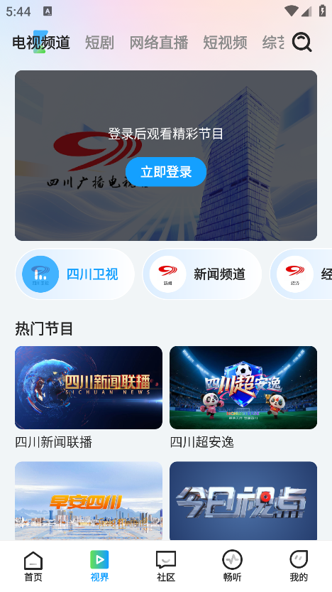 5. 通过“视界”板块,可以观看不同的视频频道节目。