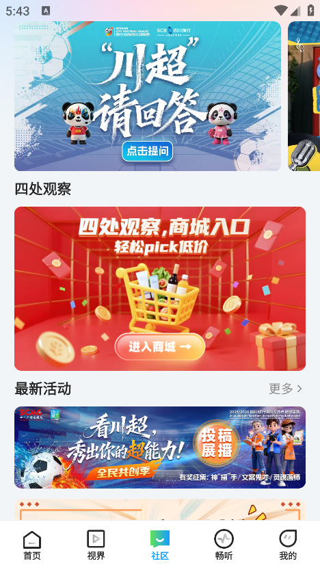 四川观察是四川广播电视台倾力打造的本地新闻资讯平台。它依托全省广电新媒体资源,以原创独家短视频为核心特色,以新闻直播为突出亮点,致力于为用户提供最新、最全面的四川本地新闻。该平台代表四川的权威声音,是时政新闻的新媒体主阵地,也是主流政商界精英的交流圈。平台拥有大量独家视频内容,通过对舆情的深度解读,让新闻更具可看性。这些视频制作精良、视角新颖,为用户带来不一样的观看感受。平台评论区氛围活跃,用户可以在新闻下方与同城网友交换意见,形成良好互动。用户还能进行评论、点赞和分享等操作,增强参与感。