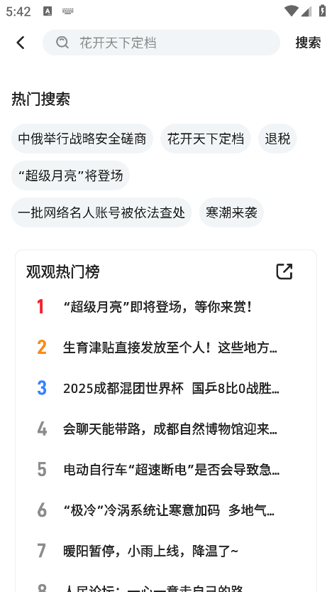 3. 使用顶部的搜索框,可以快速查找感兴趣的新闻内容。